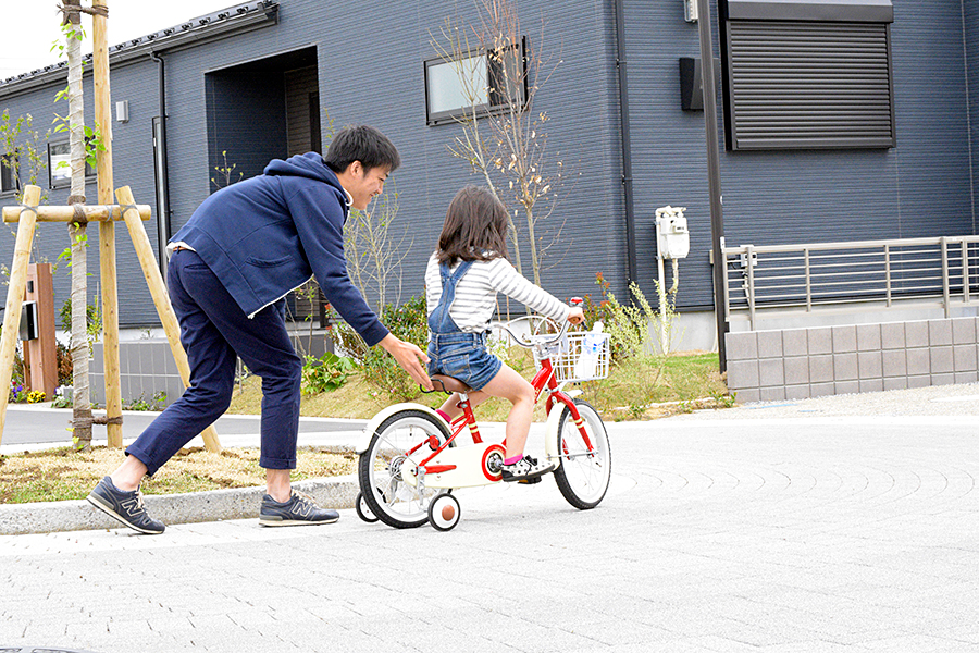 子供が生まれたら中央緑地帯で遊ばせるのが今から楽しみです! クルドサックは車の通り抜けができないので子供の自転車練習ができるのも嬉しいですね。