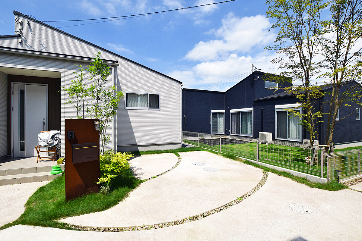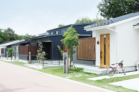 「町全体で借景を楽しめるロケーション」を条件に宅地を開発。地形を最大限に生かして限られた土地を有効活用することで、コストを抑えつつ、ゆったりと暮らせる空間を可能にしました。また、平屋を連棟することで、将来的な日当たりの不安も払拭。