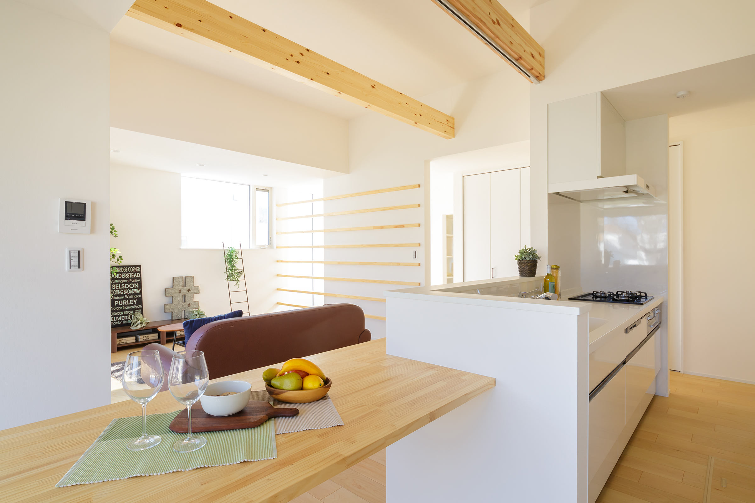 2階がないぶん天井高を気にする必要がないから、思い切って梁を出したり、